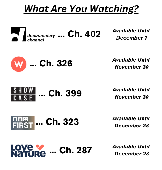 Check back regularly to find out what channels are available for your viewing as well as any channel changes that may have occurred.